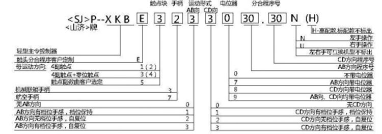 a.替代法国施耐德XKB机型。联动操作限位到2档。前后(AB向)操作和左右(CD向)操作可同时到达2档位置。当AB向到达3档时,CD向只能到达1档。而AB向到达1档,CD向可到达3档。
