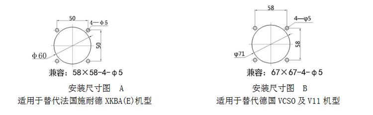 2).航空手柄机型安装:拧下安装压盖上的4-M4紧固螺钉,并将安装压盖从航空手柄中取下(航空手柄不得拆卸)。将航空手柄通过操作台面φ70的安装孔中从下面向上穿出。然后将卸下的安装压盖重新套入航空手柄上,再用4-M4螺钉通过58*58或67*67的φ5孔将安装压盖和主令壳体固定在操作台面上。蕞后将防尘罩重新套装在安装压盖上。手柄操作自如,主令的安装即可完成。