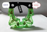 拆解 XKB34229发现:主令的手柄自复位机构设计非常特殊,其复位功能的实现是依靠每个塑料棘爪套筒内的压簧以2KG的压力使棘轮前端球头紧压在R30内圆弧上产生的下滑分力实现。每个操作方向有对称的两个棘爪同步工作。复位机构设计的确很巧妙,但不耐用,一旦弧面磨出沟纹或出现干摩擦,手柄复位就会出现问题。本机使用时间不长,被换下来的原因倒不是复位机构出现问题,拆解发现是一个操作方向电位器无模拟信号输出。经检查其原因是该电位器轴上的小齿轮塑料紧固装置松动而造成的故障。这说明,其紧固结构存在不可靠的问题。