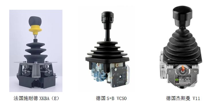 本世纪二十年代前后,国内市场上的轻型主令控制器主要有四个国家的产品。他们是法国的施耐德XKBA(E)系列的轻型主令控制器;德国S+B公司的VCSO轻型操纵杆;德国杰斯曼公司的多轴控制器V11,意大利TER(特尔)CK主令控制器。从市场占有情况来看,法国的施耐德XKB A(E)系列的轻型主令控制器约占80%以上,德国S+B公司的VCSO型操纵杆所占百分之十几,而其他品牌国内市场很少见到。从质量上看,德国的产品坚固性、可靠性、耐用性较好,当然价格也较高。而法国施耐德的XKB产品使用寿命明显短一些。从施耐德的技术资料上看,施耐德的轻型主令控制器机械寿命仅有100万次。在市场调研中,据大多数用户反映,在频繁操作情况下,施耐德XKB A(E)轻型主令控制器多数使用一年多的时间就需要更换。当然,有的场合操作不频繁,可能用的时间长一些。从产品结构上看,国外进口的轻型主令控制器都达不到客户要求的坚固、耐用的要求。市场调研发现,德国S+B公司的VCSO寿命可达2—3年以上,而杰斯曼V11质量情况未收集到相关信息。
