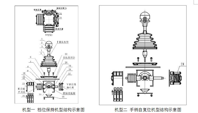 机型一:、手柄有档位手感、档位保持可靠。(即操作员手松开操纵杆后,手柄能在相应档位可靠停留)