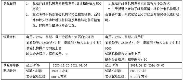 2、因客户需要很多年的使用,才能考核出产品的质量可靠性和耐用性。为了更快掌握产品的各项技术指标,必须进行台架寿命试验。我们选取两种机型的各一台样机,对其做台架带负载寿命试验考核,详见产品试验记录表。