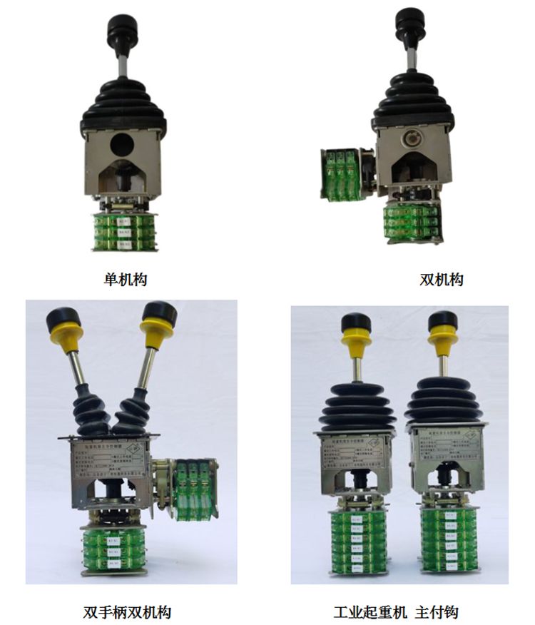 1.分类:控制器按手柄分为单手柄单机构、单手柄双机构,双手柄双机构三种类型。单手柄单机构控制器操纵一个凸轮轴组合开关,其手柄“一”字形操作;单手柄双机构控制器操纵两个凸轮轴组合开关,其手柄“十”字形操作或联动操作;双手柄双机构控制器“一”字形操作,每一个手柄操作一个凸轮轴组合开关。